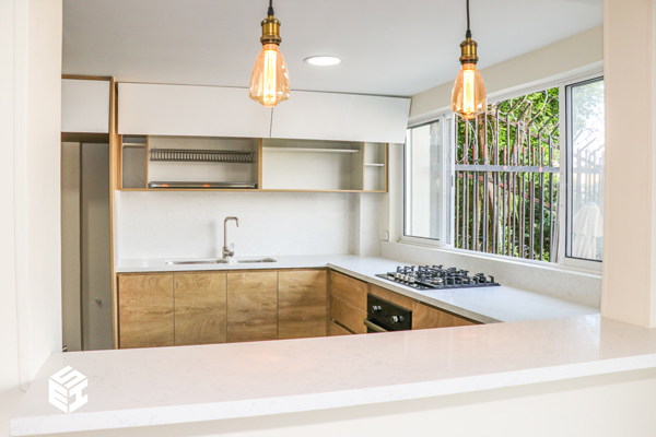 Creamos cocinas únicas que reflejan tu personalidad y se ajustan a tus requerimientos. Desde la distribución del espacio hasta la elección de materiales, colores y acabados, cada detalle es cuidadosamente diseñado para brindarte una cocina funcional, estética y hecha a tu medida.